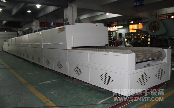 1、內膽尺寸:烘干區;長12000*凈高250*進料寬1000mm,分6段獨立控溫,每段2000m;